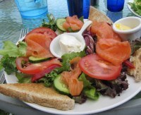 Last time I visited I had this smoked salmon salad, which was absolutely lovely. (I loved the toasted triangles tucked into the side of the plate!) Afterwards there was Traditional Bakewell Tart. (I definitely did not need any tea after this lot!)Now I know what to expect, I shall certainly be visiting again, preferably when the weather's good and I can sit outside in the sunshine enjoying the beautiful Derbyshire countryside.