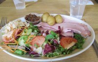 It certainly is the most amazing place, covering more than 200 acres. There is ample car parking, and the small cluster of buildings contain an excellent resturant with additional outside seating in the courtyard. A large number of enthusiastic young staff members kept everything flowing and in next to no time I had this lovely honey baked ham salad, which was just delicious and contained so much meat!