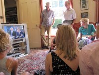 Our large party was given a very warm welcome from Paul and Flora Bennett, who immediately invited us into their home to watch a short TV programme about the deserted medieval village. This included aerial shots so gave a very clear indication of what we would be seeing on the ground, which I thought was excellent. In the adjacent room literature had been laid out for to peruse, including the book written by Paul's mother "Brackenborough - the Story of a Manor".