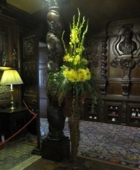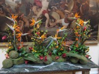 Every room was decorated, each so carefully worked out to blend with the surroundings. For example in the Leicester Bedroom the rich decoration was reflected in the flowers, while a landing was decorated with these striking Birds of Paradise.
