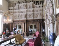 The entrance hallway just takes your breath away being filled with the most amazing Elizabethan alabaster I had ever seen, with the twelve apostles in one part and the wise and foolish virgins on the chimney piece.On the floor above, and the stairway is just beautiful, there are lovely rooms, including this Dining Room. All the furniture is 18th century with Chippendale chairs. Amongst the pictures are notable works by Gainsborough, Reynolds, Cotes and Marlow.
