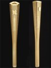 The torch itself has been designed by the London-based design studio BarberOsgerby. Each weighs 800g and is made of aluminium alloy. There are 8,000 circules perforating the golden skin, one for each inspirational torch bearer.