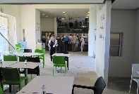 This is the area you first enter, so it's pretty spacious. The re-roofed building at the back is a large, beautifully beamed barn, with a large number of tables and chairs, on two levels, seating 120. The food was better than expected - including chicken tika and a tasty stew, as well as the usual baked spuds and sausage and chips.