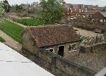 At the moment there is very little in the way of furniture or artefacts, but I really liked the bareness, which certainly gave the place character. One of the exceptions was this Nursery Room. Upstairs it was possible to see the amazing construction of the roof, with the gently curving tree trunks. From one of the windows it was possible to look out onto the Wash House - which had been filled with appropriate artifacts. How hard the women must have worked in there! Beyond was the large walled garden.