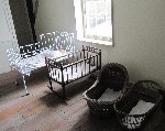 At the moment there is very little in the way of furniture or artefacts, but I really liked the bareness, which certainly gave the place character. One of the exceptions was this Nursery Room. Upstairs it was possible to see the amazing construction of the roof, with the gently curving tree trunks.