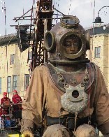 <p>H</p> He then ended up wearing his impressive under water helmet! Then he rose up, and started walking - just incredible. I thought this the most marvellous spectacle and wouldn't have missed it for the world. I was sorry not to be staying to see the the puppets meet and then sail away down the Mersey, but despite my best efforts, months ago, there wasn't a bed to be had anywhere in the city.