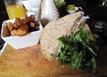 Looking round there were certainly a lot of tables, and I imagine it's quite popular, so it must be good as it's really not particularly near anywhere, and everyone would have to travel to get to it. (The nearest place is Ashover, with Matlock over 4 miles away.)I chose to just have a sandwich, but it was certainly impressive when it arrived, although the service was a bit slow. This is smoked salmon and creme fraiche on granary, with rocket salad, served with homemade chips which cost £6.50, and was both lovely and very filling.