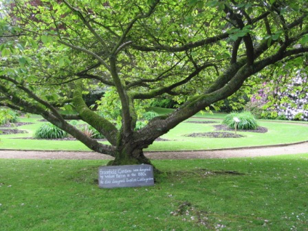 I was particularly taken with Parterre Garden, where cool colour are to be used to fill the beds. Further on there was an interesting array of different kinds of hedges, which the students were learning to prune. My favourite tree was Prunus 'Shirofugen' for underneath was a notice commemorating the contribution made to the gardens by William Barron (1805 -1851), who was head gardener at nearby Elvaston Castle - see my ebook telling the delightful story about this place.