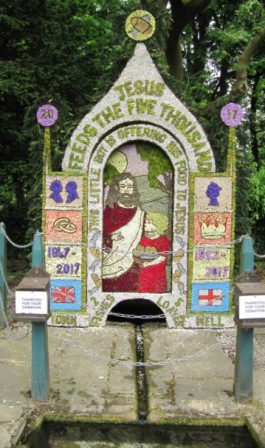 Then round the corner to Yew Tree Well - which was one of my favourites this year. There was just so much skill involved in creating such striking images using only natural material. No wonder the many children who were visiting just loved this!