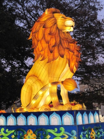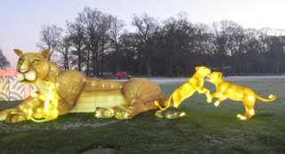 I was surprised the town wasn't more decorated for the event, and there were very few posters, but inside the Arndale Shopping Centre I encountered my first 'lion', which had been put into a pen and was going round being stroked by the crowd, to the absolute delight of the many children.Then it was off to find The Lanterns of the Terracotta Warriors. These were 40 illuminated exact replicas of China's Terracotta Warriors, the famous clay statues which guard the first Emperor of China in his Tomb, each over two metres tall. The statues were originally created for the 2008 Beijing Olympic Games, and have travelled the world. What amazed me was that you were able to walk right up to them, even though they were quite fragile. They reminded me of the stunning light sculptures we'd seen at Longleat and wondered if they were created by the same skilled craftsmen (see previous blog)