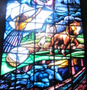 I would like to reproduce the whole of the information booklet - it's just so interesting, but obviously I can't, but will pick out what seems to me the most poignant points.'The plough horse will become a horse of war and ploughshares will be turned into swords. Beneath the ploughed land we see miners at work, perhaps soon to become tunnellers for a different cause - to under-mine the enemy. ...