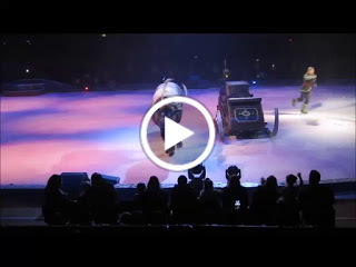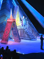 Then the story proper began and it was spectacular - with things happening constantly - from the roof, the edge of the ice rink and props themselves. There were times when you could hardly keep up with all the fun! This is the Ice Palace, which also doubled for other things as well.However, the character who stole my heart, and I fell in love with, was dear Sven the Reindeer. Who couldn't love such a wonderful creature, whilst at the same time admiring the skill of the operators!
