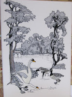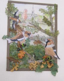Also from a member of the Lincolnshire Branch is this delightful, overflowing piece by Jo Eades entitled 'Clumber Park with Hawfinch' - how typical that is of this lovely area, just bursting with bird life.