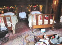 Another, much more cheerful room was the Narnia Room, based on Stories for the Christmas Fire - a collection by Charles Dickens and it appeared a Mrs E Gaskell, which was certainly new to me. The board said "There was an old nursery, that had been used for all the little lords and ladies long ago, with a pleasant fire burning in the grate, and the kettle boiling on the bob, and tea things spread out on the table."There were a few more rooms than I have described, but what completed my visit was walking over to the wonderful Edward and Vintage Shop which I just love visiting it's so special and unique (see previous blog). It was the lovely David who had been responsible for the event at Tissington Hall and it was so interesting talking to him. For example when he and a helper went into the cellar to collect some bottles of wine to go onto Miss Haversham's wedding table, he suggested that they hold them at the base and walk through the cellar carrying them high above their heads so they would catch any cobwebs! In fact he was full of such fascinating details it really made the visit even more special for me, and I'm so glad that he's already full of ideas for next year, when it will be even bigger and better.