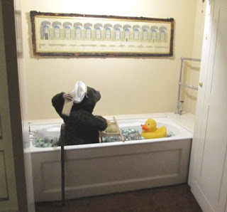 Upstairs Mole was snoring soundly in a little bed, whilst Ratty was taking a bath! Quite irresistible!