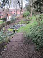 On the other side is a steep bank, not ideal for gardening, but here cleverly turned into a series of terraces, which were just full of snowdrops, hellebores and early daffodils. Just lovely. There are quite a lot of steep steps, but also smooth, sloping paths, so accessible by just about everyone. At the very bottom is a most attractive lake, and tucked away in the corner what looked to be an exciting cave.