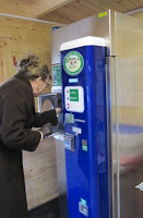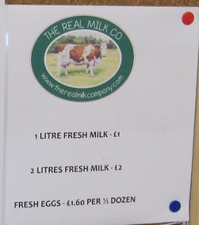 I'd seen the signs advertising milk on the roads leading to Southwell, in Nottinghamshire, but I've never investigated, until going yesterday with friends, who were well used to buying their milk this way. Following the signs from the B6386, you arrive at a small shed at the side of a field! However, inside is a revelation, containing not only spotless bottles (both plastic and glass), but the small, neat vending machine.