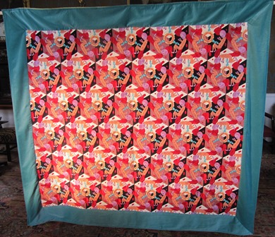 However, in this amazing exhibition there were other pieces other than from prisons. This 'Small Uniform Coverlet' was made between 1860 and 1870 and was made from black, red and white uniform scraps with a red wool fringe. Soldiers were encouraged to take up sewing as a valid alternative to the less salubrious pursuits of drinking and gambling; needlework was also used as a form of therapy for those injured in conflict and recuperating in hospital. The Great Exhibition of 1851 included more than thirty examples submitted by military personnel.Another quilt I also hadn't expected was a very striking, colourful and beautifully executed one by the artist Grayson Perry and was called 'Right to Life'. It was only the second quilt he had ever made, which I thought quite remarkable.