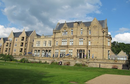 The architecture of the main building is really striking, rising up from the reception area to a wooden ceiling high above.Outside there is a lovely crochet lawn, and I sat for a while looking towards the lovely buildings, although it was quite noisy from the nearby A6.