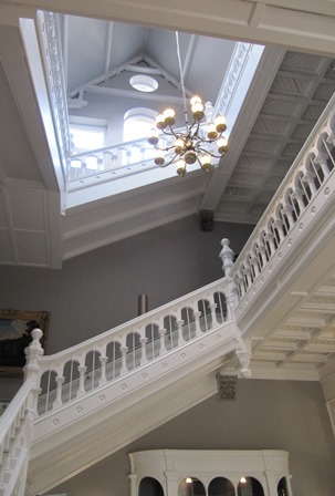 The original house was built for a rich lead merchant names John Alsop in 1820, but when he emigrated to Australia in 1848 he sold Grove House, as it was then called, to the Reverend William Bathhurst. In 1863 Grove House was sold again, this time to William Roberts, who promptly demolished it, and built a new one at a cost of £35,000. He must have been pretty pleased with himself as he put his initials all over the house - this is at the bottom of the beautiful staircase!
