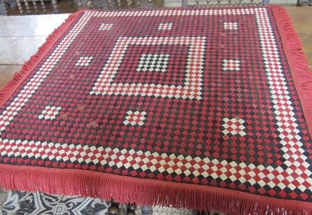However, in this amazing exhibition there were other pieces other than from prisons. This 'Small Uniform Coverlet' was made between 1860 and 1870 and was made from black, red and white uniform scraps with a red wool fringe. Soldiers were encouraged to take up sewing as a valid alternative to the less salubrious pursuits of drinking and gambling; needlework was also used as a form of therapy for those injured in conflict and recuperating in hospital. The Great Exhibition of 1851 included more than thirty examples submitted by military personnel.