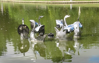 The weather when I went to visit was just perfect - warm and sunny, and in addition to the dozens of sculptures, there is always the accompanying sound of cockerels crowing, for this is lovely swan sanctuary, full of lakes and wildfowl