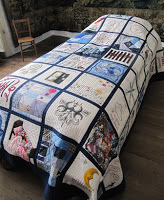 Another excellent and interesting quilt was called 'The Sleep Quilt'. In the noisy, light-ridden prison environment, a good night's sleep is the stuff of dreams. It was commissioned for an exhibition entitled 'Things we do in bed', held last year at Danson House in Kent and curated by the well-known author, Tracy Chevalier. Over 60 men and 2 women from nine prisons contributed blocks which were assembled at HMP Wandsworth. Most of the quilting was done by one man in his cell at HMP Brixton who, to ensure the quilt was completed on time, often stitched for ten hours a day.