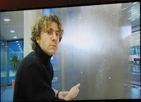 Then in one corner was a TV showing a film of the wonderful designer Thomas Heatherwick describing his concept for the installation. Filling a 30 metre high vertical void must have been a real challenge, but he and his team decided on following the idea of 'Bleigiessen', a tradition in central Europe when melted lead is poured into water, which produces extra-ordinary shapes from which you can predict your future for the coming year.Following on from this idea, Heatherwick and his team produced 150,000 specially processed glass spheres, suspended on about 1 million metres of stainless steel wire. The sculpture glows with a constantly shifting rainbow of colours.