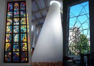 I sat for quite a while in the wonderful conical shell-like structure in the reception area. This was disguised by Theis and Khan and is a wonderful 'quiet space' that reaches the full 11 metres to the top of the building to a single roof-light. Obviously the light inside alters with the weather and the seasons, but it was so marvellous inside, where I could here the singing, and yet it was hard to realise that I was in the heart of London. (This picture was taken off the Lumen web page as it was impossible to get far enough back to photograph it adequately!)