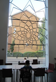 Watching the video was absolutely fascinating, and I couldn't wait to go and see the installation, but actually I was a bit disappointed as, from ground level, the wires rather obscured the marvellous glass spheres. It was possible to go in the lift up to the 5th floor, but as I don't like heights, I stayed at the bottom.