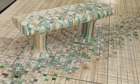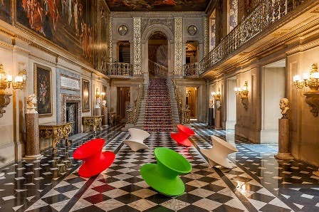 This latest exhibition is called 'Make Yourself Comfortable' and is a collection of contemporary seating by international designers. However, it isn't all roped off behind barriers or anything like that, the chairs are dotted around, and I hadn't at first realised this, but you can sit in any of them! In the Great Painted Hall are these stunning creations by Thomas Heatherwick. I must admit this is not my photo - I found it on the web, because when I was there it was impossible to get this view there were so many giggling Japanese teenagers having a great time! They were spinning around, and filming each other having a great time!