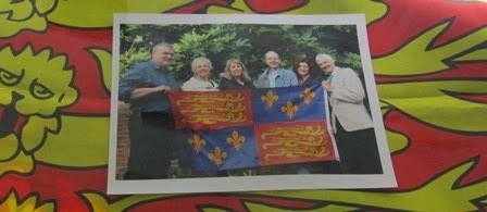 On the 527th anniversary of Richard's burial lower leg bones were found beside the letter 'R' of the car park! This is the banner bearing King Richard's royal insignia held up by members of the dig team on the first day of excavation. The flag was later used to cover the finds box containing Richard's remains.