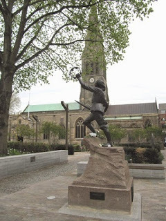 I couldn't wait to visit Richard III's final resting place in Leicester Cathedral having being to Leicester for the reinternment - see previous blog. However, I couldn't believe how hard it was to find the Cathedral for unlike say York or Lincoln, it isn't high on a hill, and clearly dominating the skyline. In fact I felt rather stupid having to ask where it was! There certainly were very few signs!However, once I'd managed to find the right place I immediately recognised it from the TV coverage surrounding the discovery of the King's skeleton. Having been into the most interesting Visitor Centre, (see see previous blog), I walked passed the famous statue of the King which was donated to Leicester city by the Richard III Society in 1980, and is still dotted with white roses presumably brought by passing visitors.