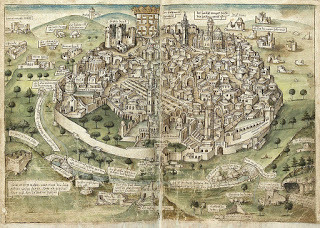 This is Jerusalem at a very specific time in history. It's 1191, the tail end of the Third Crusade, in which Saladin, sultan of Syria and Egypt, faced against Richard I, King of England. Saladin had wrested Jerusalem from Crusader control four years before and captured, exiled, or ransomed the entire Latin-speaking Christian population [as opposed to Greek Christians - Byzantines and others - who were allowed to remain]. It should be noted that in allowed the Crusaders/Franks/Latins to surrender, Saladin was being considerably more merciful than the Crusaders had been 88 years before, when they had massacred Moslems and Jews until the "streets were knee-high in blood."