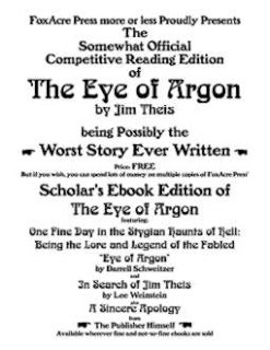 First published in 1970, The Eye of Argon may be the worst fantasy novella ever written. For decades, reading it out loud was a convention ritual across the United States - a ritual so cherished, there are even rules for it. It is what Dino de Laurentiis would have used to make barbarian movies if Conan hadn't been available.