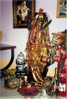 Shrine to Oshun [Lukumi]For instance, syncretic religions like Voudoun and Lucumi [Santeria] combine aspects of Roman Catholicism with West African [esp. Yoruba] religion. Bahai'ism does not consider itself to be syncretic, but some religious scholars think it is. Some scholars make the case that Christianity is a syncretic religion, combining Hebraic elements with Hellenistic ideas of a god who dies and is reborn and is consumed, like Zagreus or Attis.Important: Syncretic or discrete is not a value judgment; it doesn't reflect on the truth or authenticity of the faith.