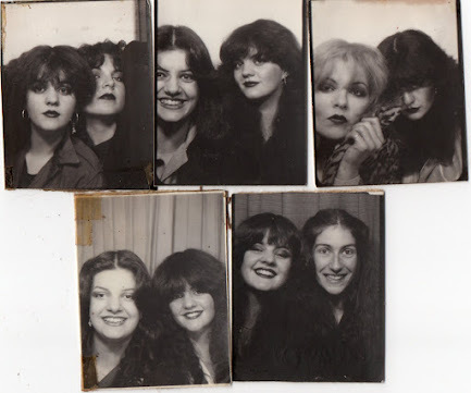 With various chums (and a couple of my sister, below) from about 1975 - 1980. Bottom right, above, was with Ray, my first long-term boyfriend. Before camera phones, digital cameras, etc... the photo booths were much used!