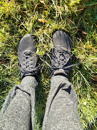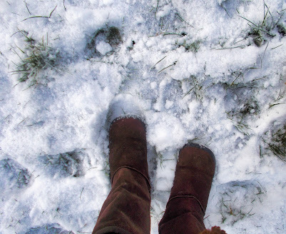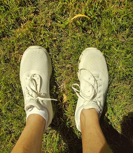 My trendy white shoe/boots, which Judith thought were galoshes.