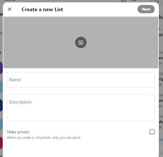 4. You will now see the screen below, where you can create your list. Give it a name, a description if you wish, and make it private if that's what you want to do. Click 'next' in the top right hand corner.
