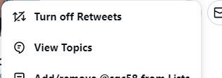 10. Click on the three dots and you will see this - the first option is to turn off retweets. Click!