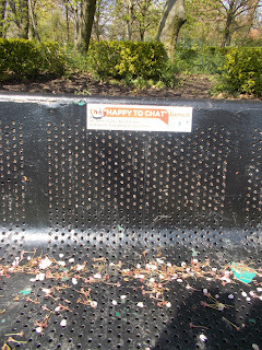 In the three years or so that I've been taking regular walks in this park, I have never seen anyone sitting on the 'Happy to Chat' bench. Plenty of people chatting away on all the others, though.