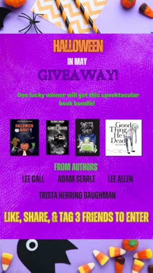 The prize box includes “Halloween Night and Other Poems” by Trista Herring Baughman, “Sinister Shorts” by Adam Searle, “The Ghost Train” by Lee Allen, and “Good Thing He’s Dead” by Lee Call. I cannot wait to see who the lucky winner will be!