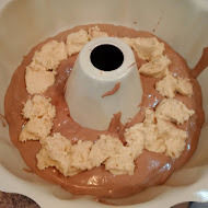 In a lightlybuttered, easy-release Bundt pan, gently pour 2 cups of batter into cake pan,smoothing out until batter is level if necessary.