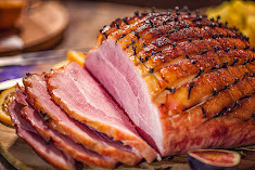 Cover bottom of a large pan with ¼ inch of water, also bourbon or wine if you’re using it. Add ham then cover with aluminum foil to avoid drying out. Remove foil twenty minutes before serving.
