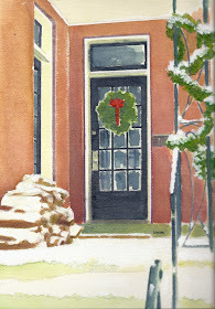 watercolor painting by Linda Lee Greene“The Christmas story took place in Israel,” Susan reminds me. “But through the centuries, and for a variety of reasons, the different factions of Christians have not come to a meeting of minds on the actual date of the birth of Jesus. So you see, Christmas in Jerusalem is not a one-day affair. Roman Catholic and Protestant Christians celebrate the day on December 25th. Orthodox Christians do so on January 6th, and Armenian Christians on January 18th.” Susan implores me to stick around and partake of an array of dazzling festivities commemorating the holiday, but by this time, I am more than ready for crisp air and fluffy snow and a bona-fide traditional Christmas as I recognize it to be—a Midwest America Christmas of time spent with family and friends, of sharing food and memories, of gift-giving and receiving amid the ambience of a gorgeously adorned Christmas tree and sparkly mantel and tabletops aglow in candlelight. As ever, my Muse reads me and transports me back to my home.