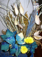 Once I bought a pink one and lightly sprayed it a tinted blue, as a blue bouquet was what the customer needed, pairing it with sprayed-gold milk weed pods.