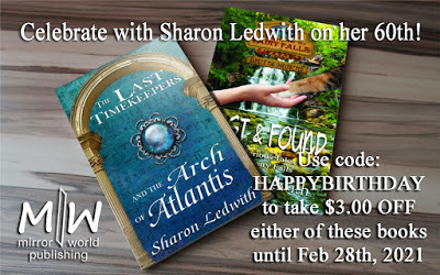 Learn more about Sharon Ledwith on her website and blog . Stay connected on Facebook and Twitter , Google+ , Goodreads , and Smashwords . Look up her Amazon Author page for a list of current books. Be sure to check out THE LAST TIMEKEEPERS TIME TRAVEL SERIES Facebook page.