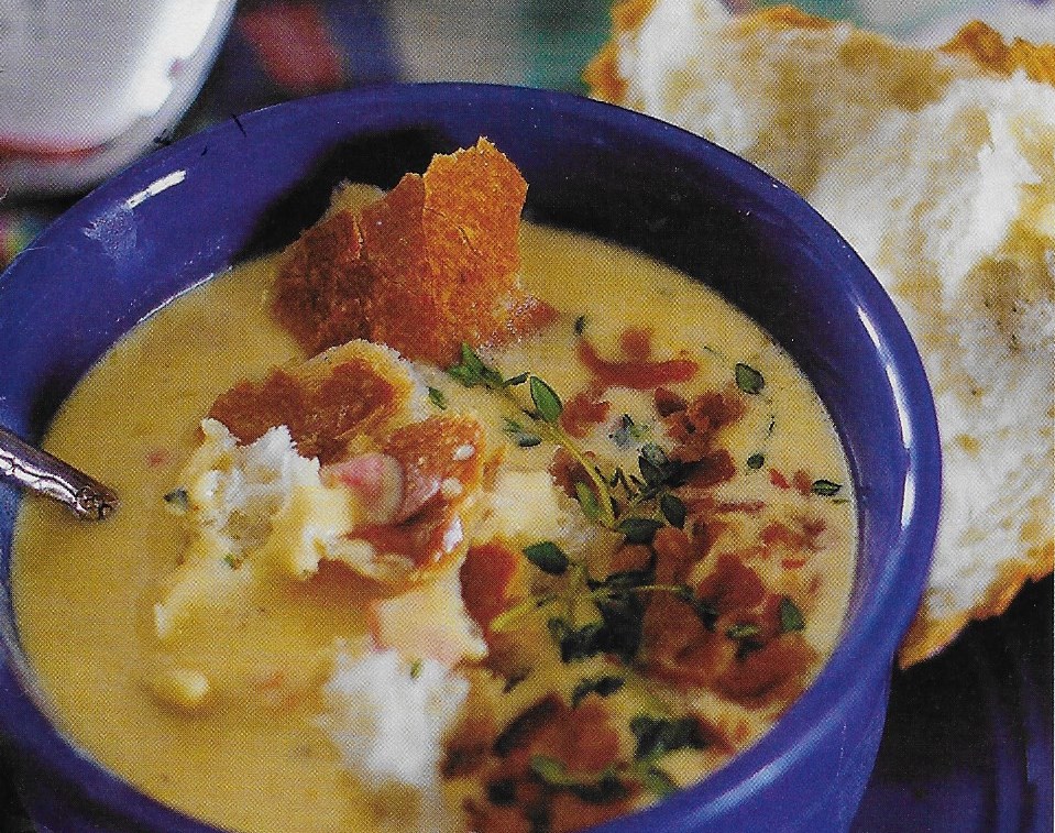 Turkey and dressing, mashed potatoes and gravy, sweet potatoes, cranberries, and several other side dishes, sweetened at meal’s end with pumpkin pie and whipped cream, and a wide selection of additional heavenly desserts was our traditional fare. Last year, we broadened our menu with some new dishes. My contribution was a lovely ‘Farmhouse Cheese Soup’ laid at table as an appetizer. The recipe comes from Stacey Pirtle of ‘Southern Discourse,’ where it is described as “…oogey, gooey, goodness…a zesty comfort food even the pickiest eaters will enjoy.”