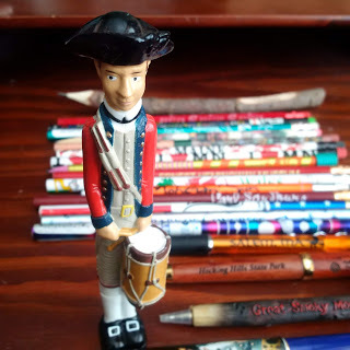 As I writer, I collect pencils when I travel - pens too. You can see some of my pencils and pens in the collection above. The soldier at the forefront is a standing pen from Colonial Williamsburg. I think he’s absolutely adorable!