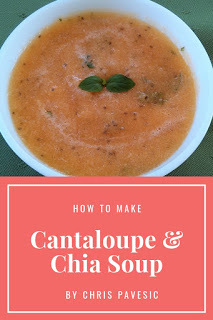 Ingredients:1 large cantaloupe (about 3 lbs.)1/4 cup honey1/2 cup orange juice2 teaspoons chia seeds1-1/2 tablespoons finely chopped fresh mint, plus small sprigs for garnishMaterials:Measuring cupsMeasuring spoonsKnifeCutting boardLarge spoonLarge bowlBlenderDirections: